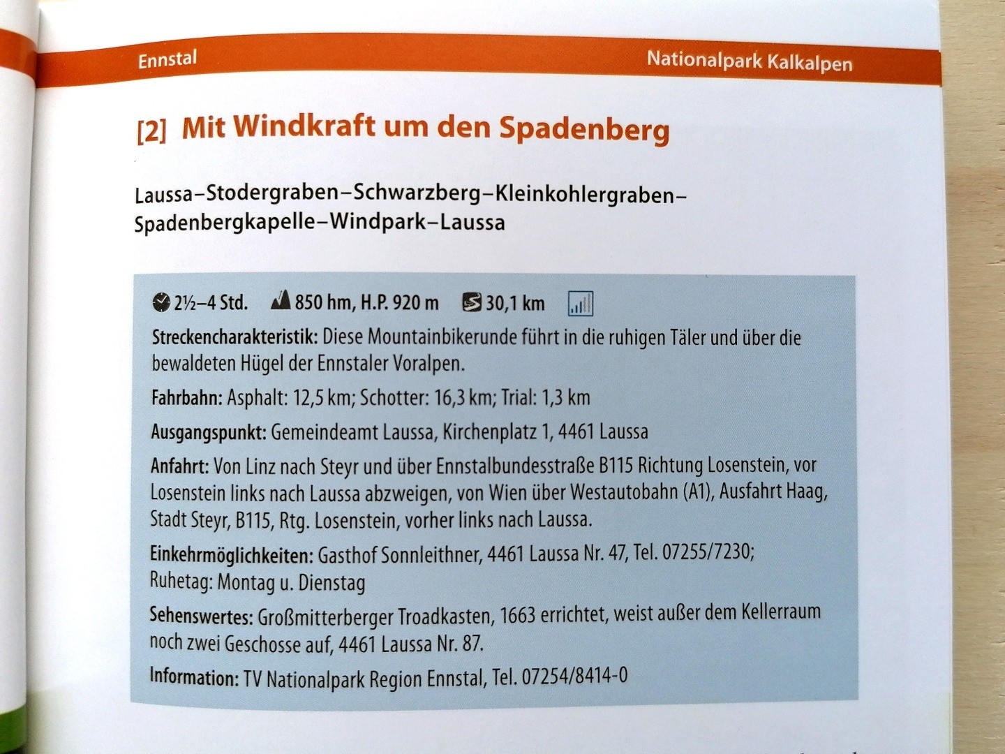 Hinweise auf E-Bike-Ladestationen oder GPS-Tracks zum Download suche ich im MTB-Tourenführer Eisenwurzen vergeblich. Auch das rechne ich dem wenig "elektrifizierten" Erscheinungsjahr 2015 an.