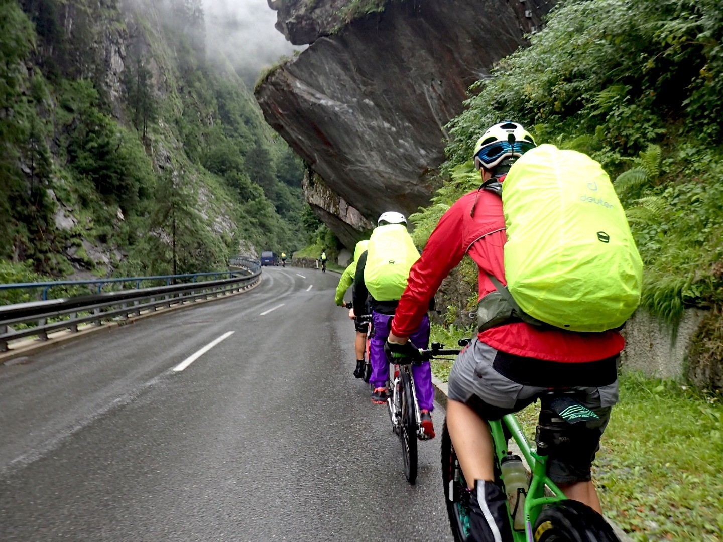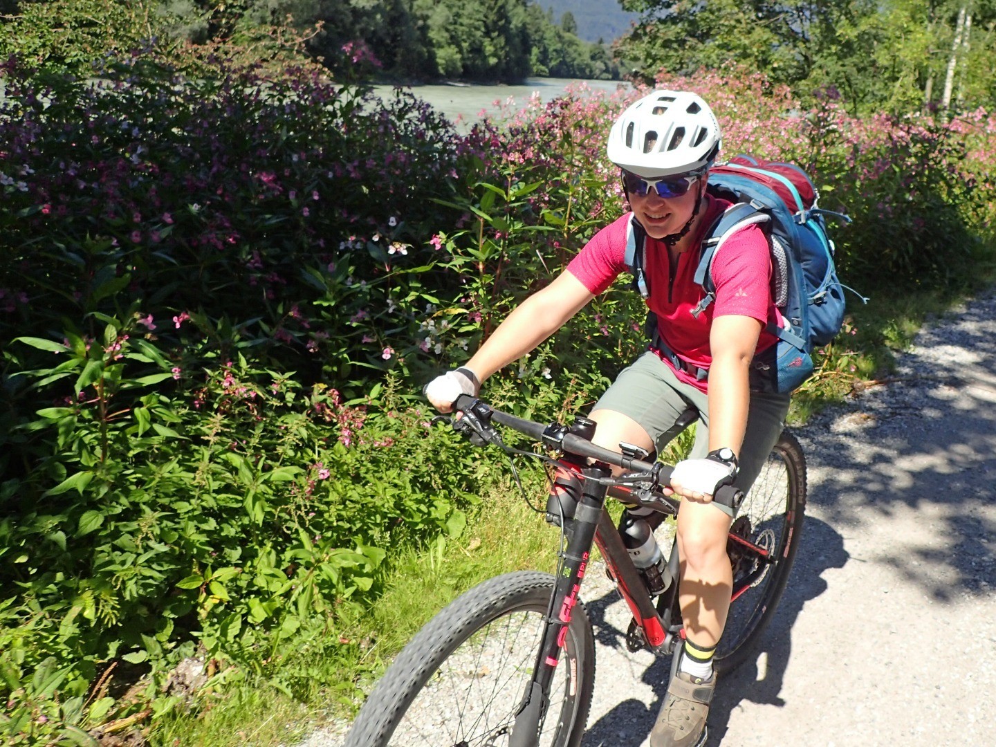 Mit Organisationserfahrung und meiner Packliste schaffte ich es, ein Gesamtgewicht am Rücken (Rucksack + Füllung) von 7,2 kg zu erreichen. Am Bike selbst war außer Trinkflasche und Tacho nichts mehr befestigt. Bisher war ich bei bis zu 5-tägigen Touren mit maximal 6 kg am rücken unterwegs – dieses Mal hatte ich aber mehr Ersatzteile bei mir.