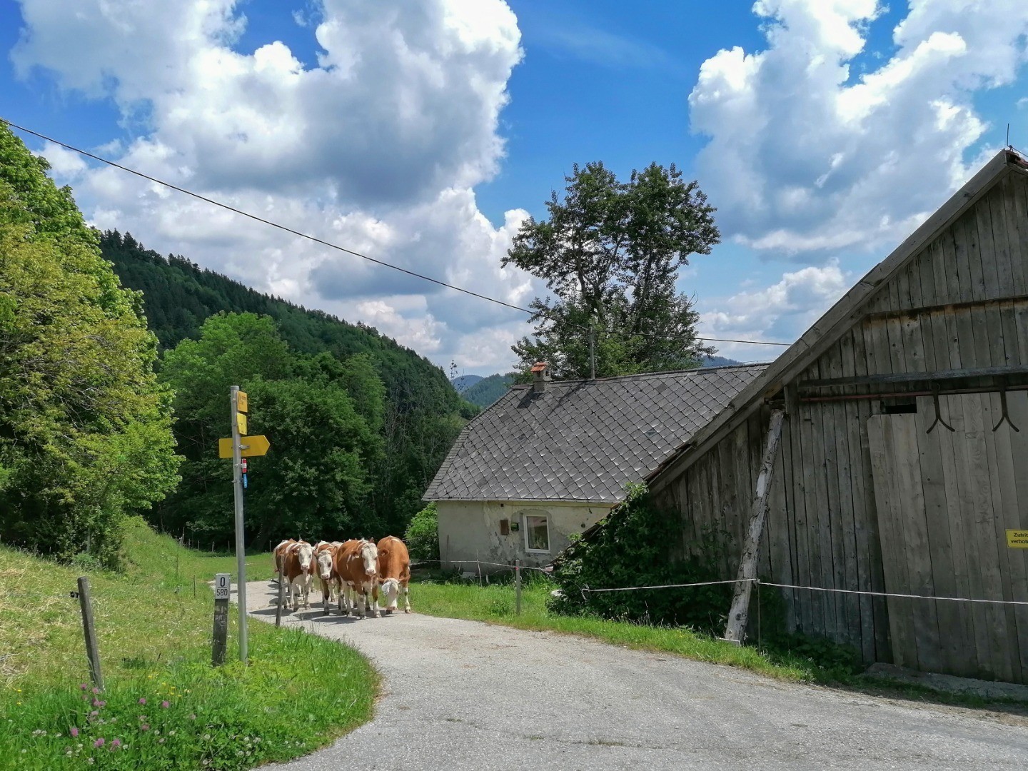Wir nehmen von Waidhofen/Ybbs aus zuerst Kurs auf die Katastralgemeinde Konradsheim. Dazu wählen wir den Weg über den Rabenberg und den mittelalterlichen Weg in das kleine Dörfchen. Nun folgen ein paar Kilometer Asphalt, die aber durch saftig grüne Wiesen mit Blick auf die umliegenden Höhenzüge nicht stören.