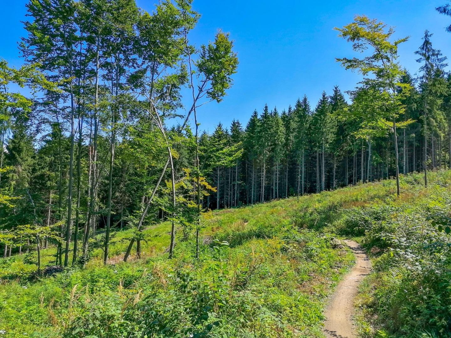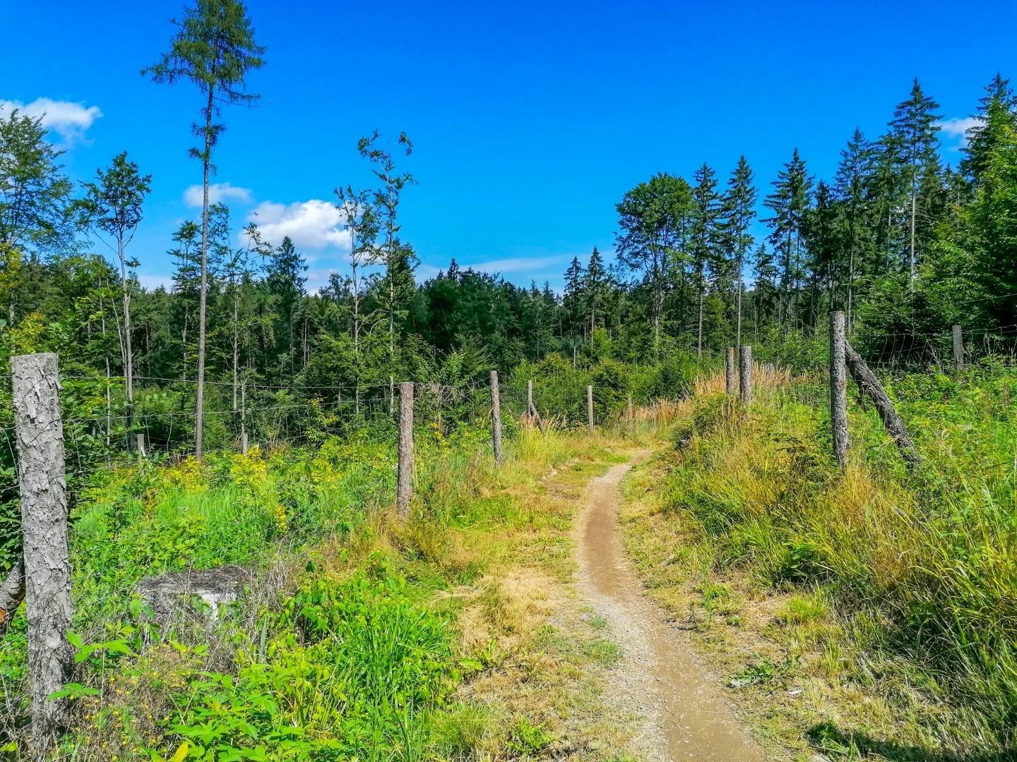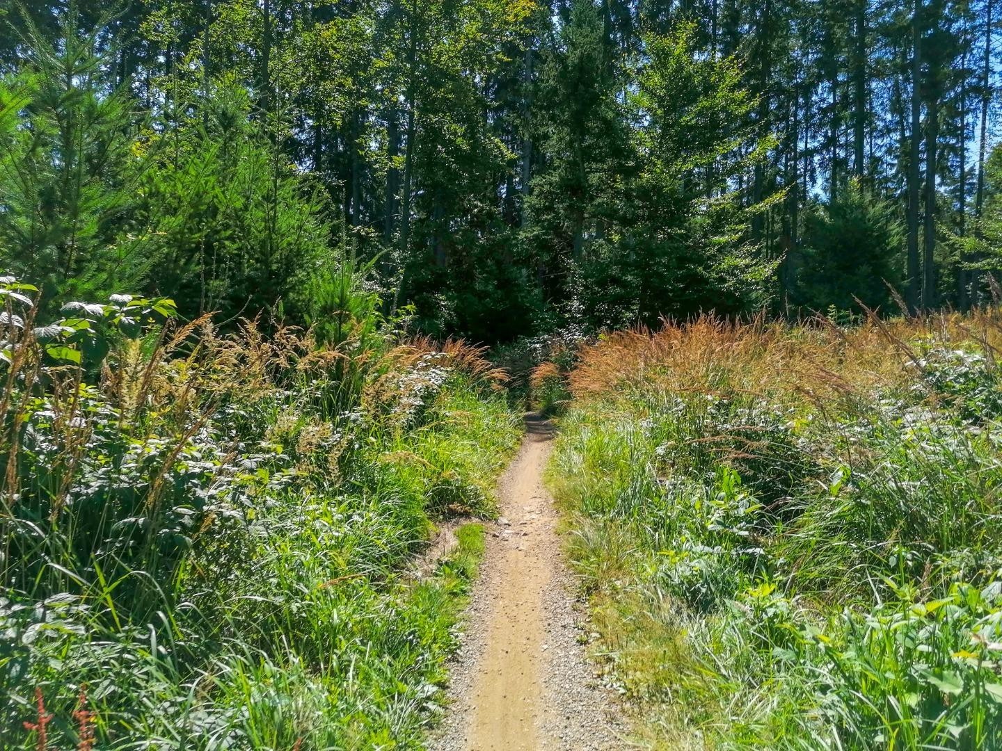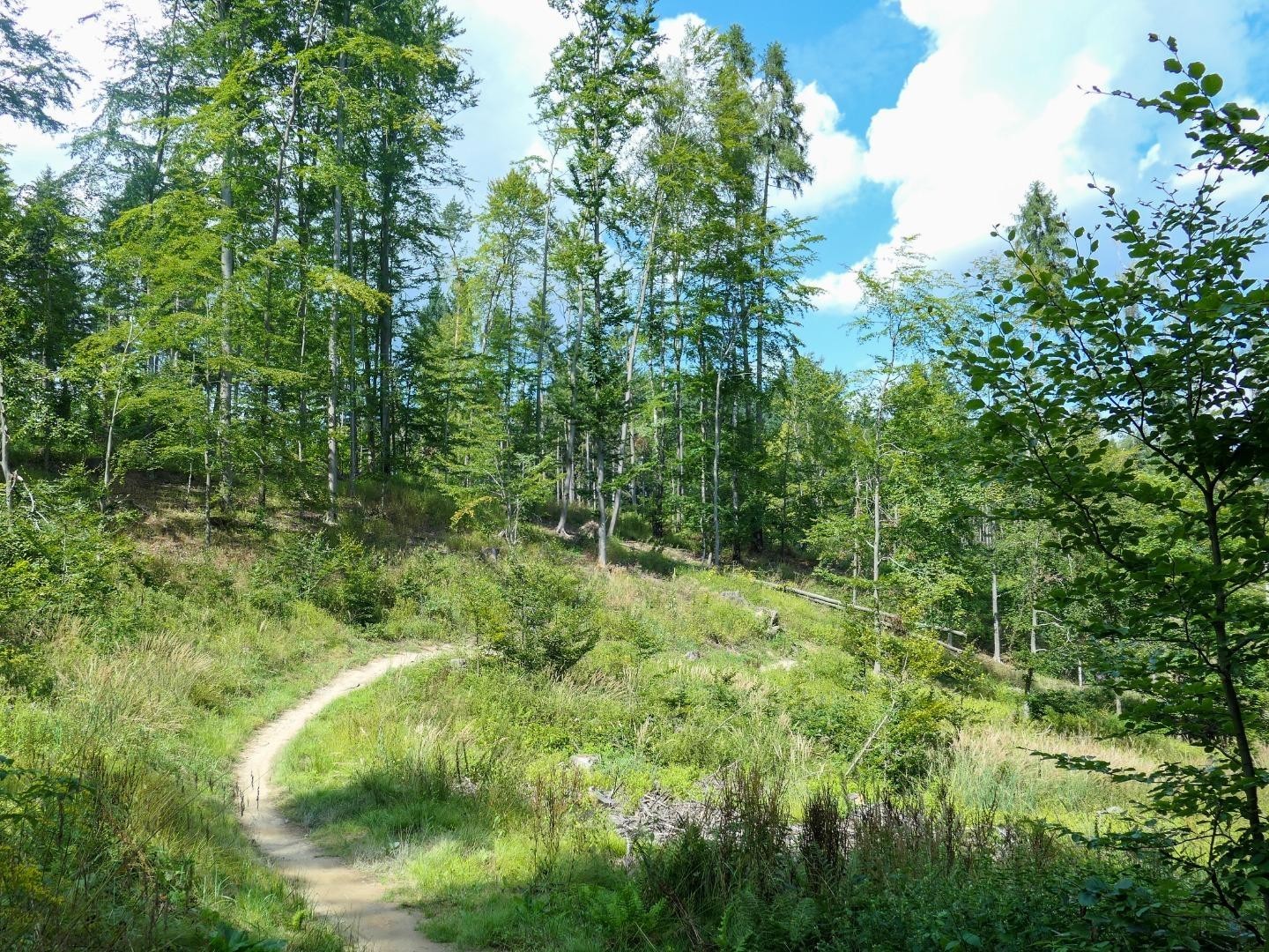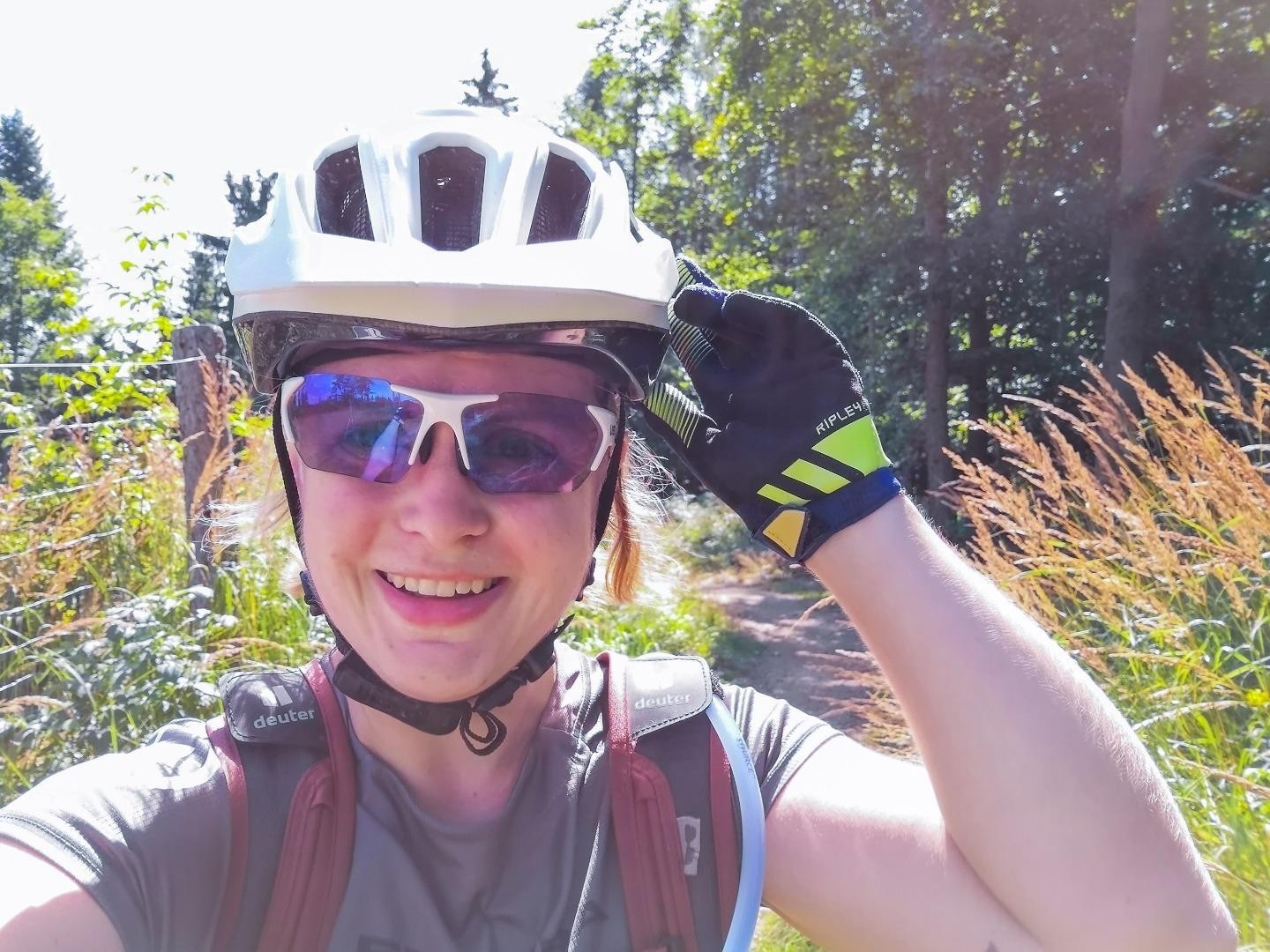 Ich starte also am Morgen mit Trail Nummer 1, dessen minimalistische Beschreibung auf flowige Passagen und fidele Hupferl hoffen lässt. Drei "Berge" werden in der digitalen Kurzbeschreibung angekündigt, die ich – abgesehen vom gemeinsamen Uphill zum Traileinstieg, im Auf und Ab des Waldes nicht mal bemerke.