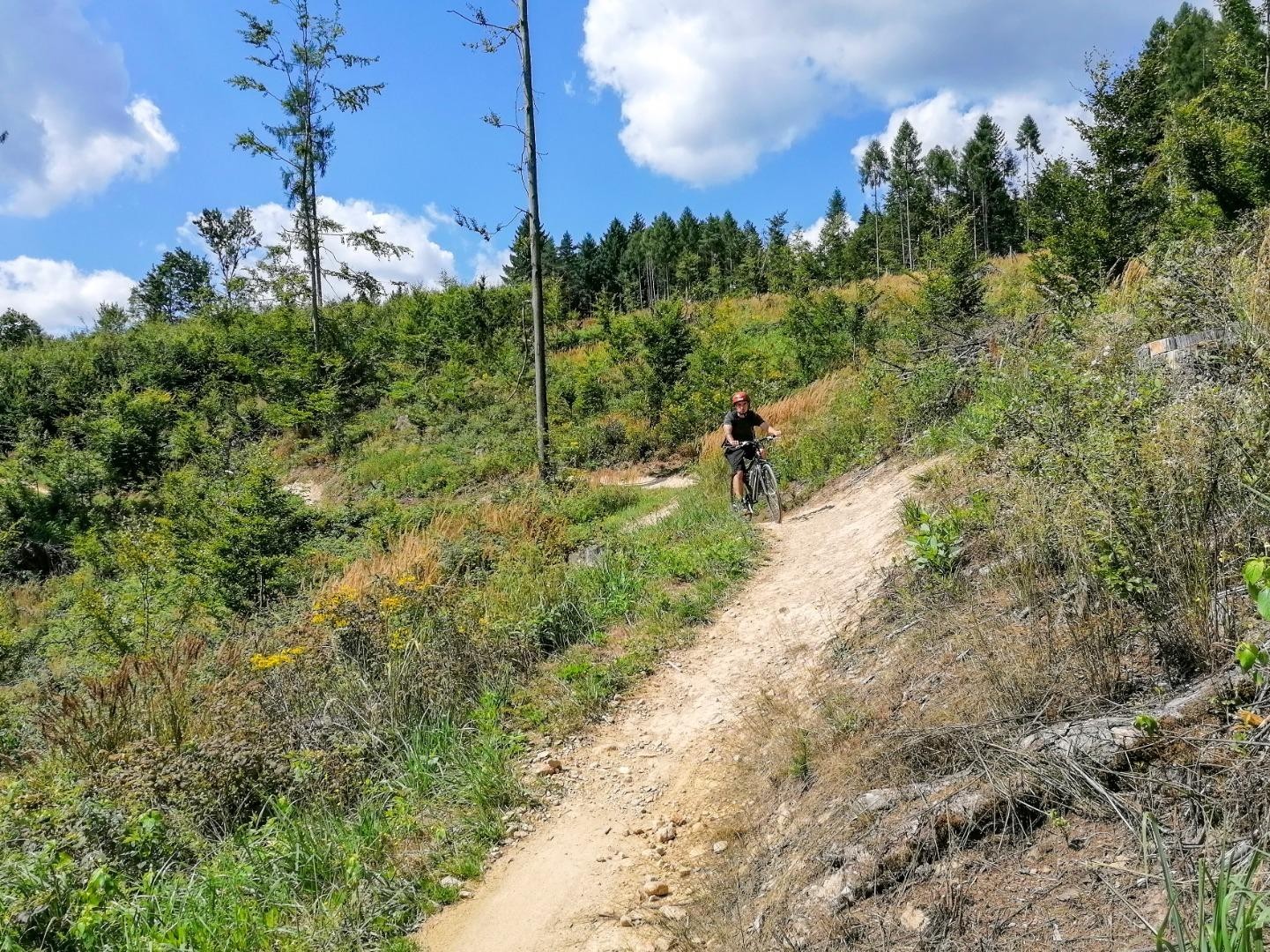 Doch einer muss noch sein! Ich schwinge mich wieder Richtung Traileinstieg und ballere Nummer 1 zum zweiten Mal hinunter, hinauf, den Hang entlang. Diesmal mit dem beschleunigenden Gefühl zu wissen, was kommt! Kein Lift, keine Straße, kein Konsum – nur Trails ohne Ende.
