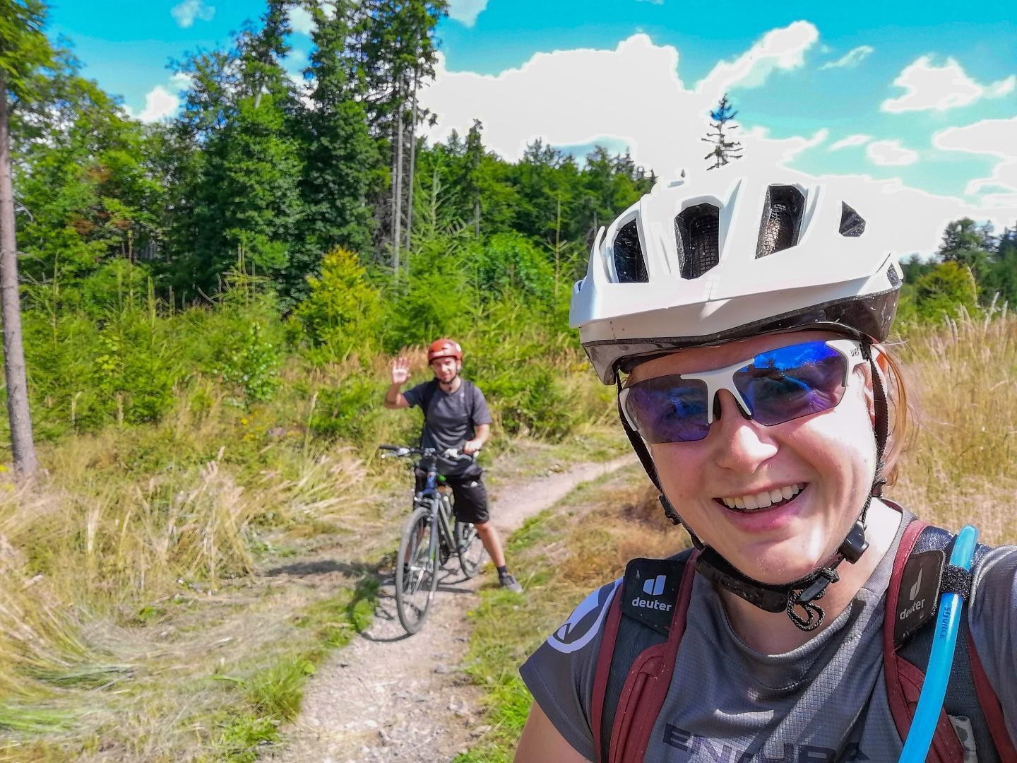 Pärchenbärchen reicht's nach zwei Trails, glühenden Bremsbacken und einem klimpernden Citybike. Mir – erwartungsgemäß – noch lange nicht!