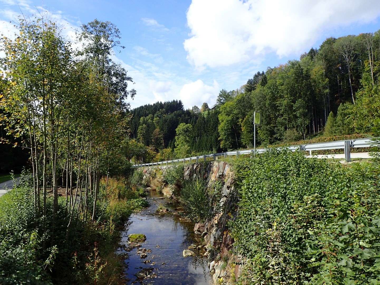 Von dort aus rollen wir das rechte Ybbsufer entlang bis zum Gasthof Kerschbaumer am Ortseingang von Böhlerwerk. Nun biegen wir scharf rechts ab in den Lueggraben, der uns weitere 4 Kilometer taleinwärts bringt.
