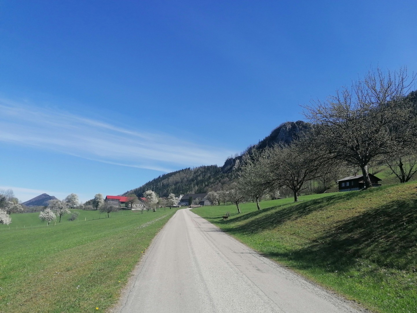 An der Kirche und am Pfarrhof vorbei empfängt uns die erste Härteprobe durch die letzten Ausläufer der Siedlung hindurch. Vor uns bäumt sich der erste, asphaltierte Teil der Strecke auf. Schnell – oder eher gemächlich – verlassen wir den Schmiedeort Ybbsitz und schrauben uns höher und höher.