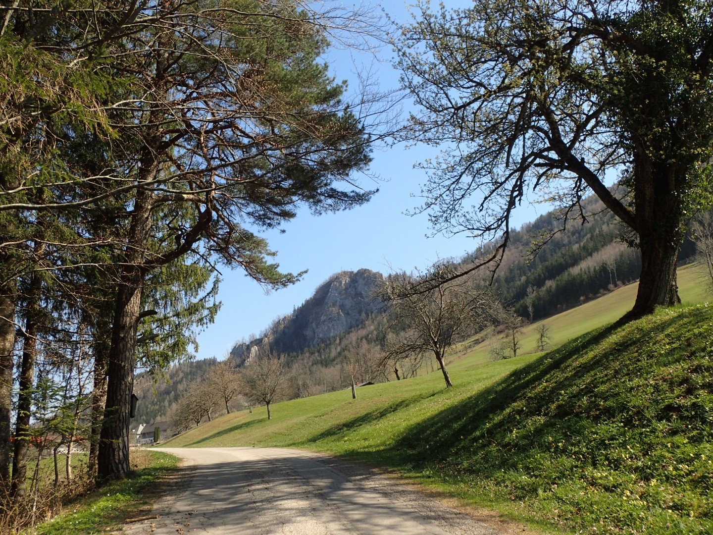 Kurz und knackig erklimmen wir nun den Höhenrücken des Arzbergs, der uns über die Stadt hebt und den Weg Richtung Ybbsitz erkennen lässt. Dort folgen wir der asphaltierten Straße, die von Bauernhäusern gesäumt wird und erblicken schon bald unser Ziel, den Prochenberg. Direkt nach einer Senke folgt ein weiterer Anstieg, an dessen Ende wir uns links am steilen Forstweg orientieren. Dieser kurze Abstecher verleiht uns einen Vorgeschmack auf die späteren Rampen des Prochenbergs.