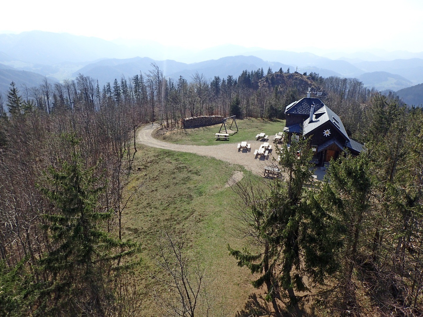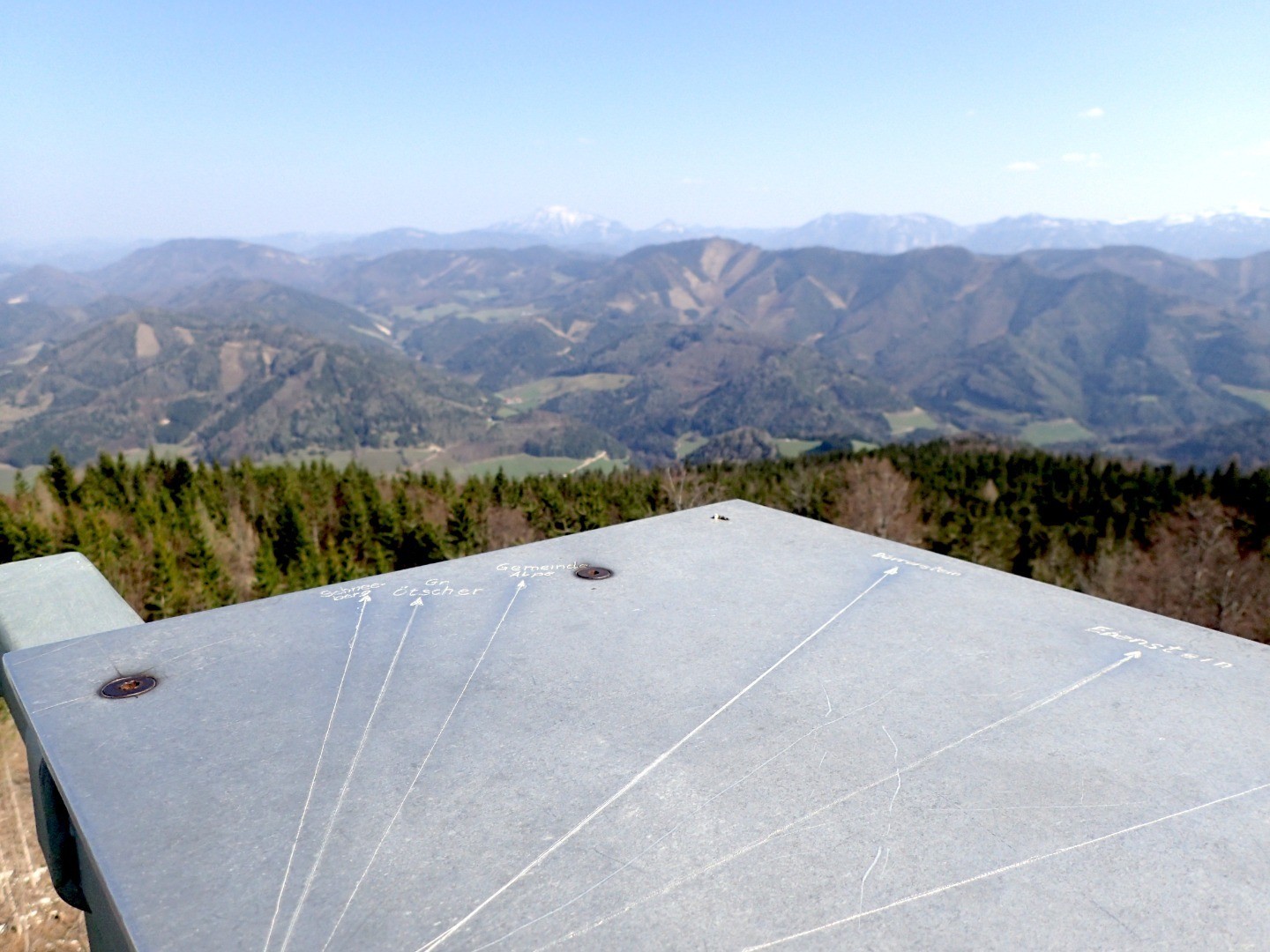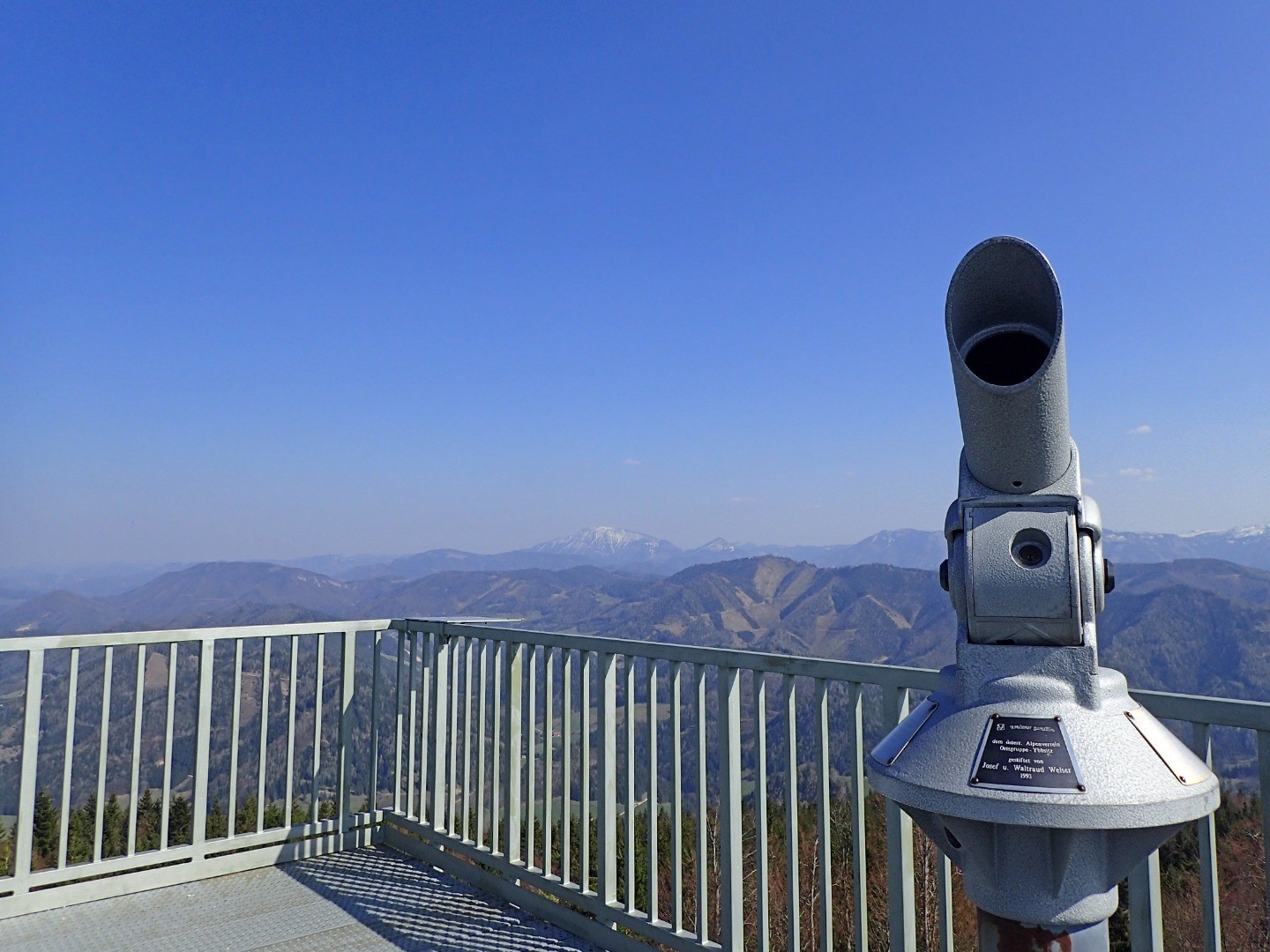 Daneben erhebt sich eine Aussichtswarte, für deren Besteigung man schwindelfrei und windsicher verpackt sein sollte. Ein uneingeschränkter Panoramablick vom Ötscher über den Buchstein, weit in die Kalkalpen hinein und das Ybbstal entlang belohnt für den zehrenden Aufstieg. Und damit meine ich nicht den zur Aussichtswarte ...