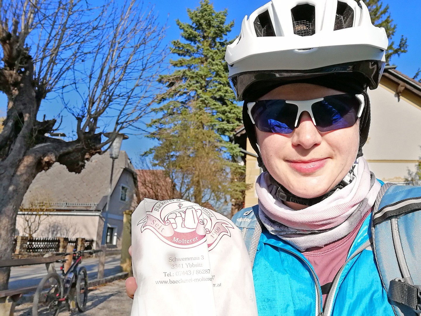 Auf die paar Gramm am Rücken kommt es nun nicht mehr drauf an, denn nun rollen wir die restlichen 10 Kilometer ganz gemütlich am beinahe flach verlaufenden Radweg zurück nach Waidhofen.
