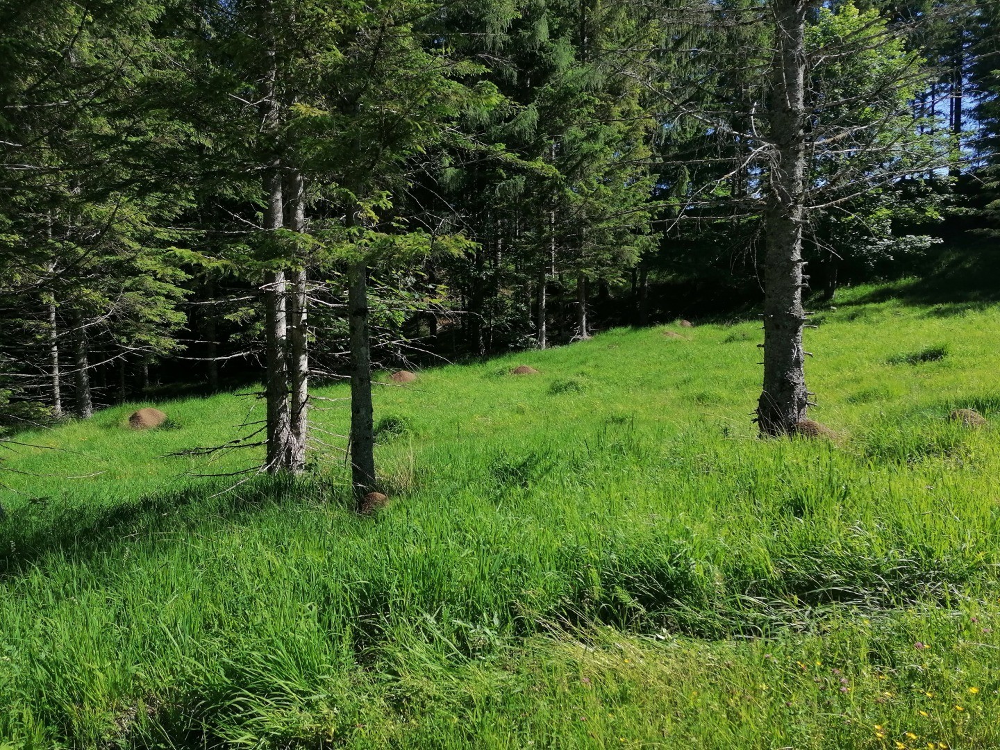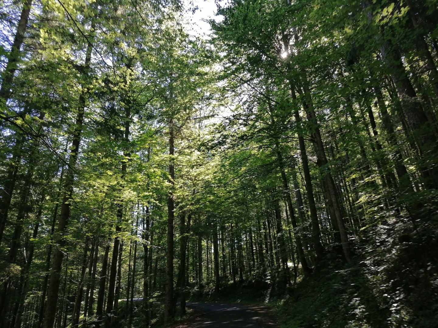 Den dichten Wald hindurch schrauben wir uns auf der Asphaltstraße langsam höher und höher. In der letzten Biegung vor der Weggabelung Promau finden wir links der Straße beeindruckende Ameisenhügel verschiedenster fleißiger Arten. Parallelen zum strampelnden Radfahrer sind nicht ganz unberechtigt – müssen ja auch wir bald unser Körpergewicht plus Rucksack fleißig den Berg hinauf karren …