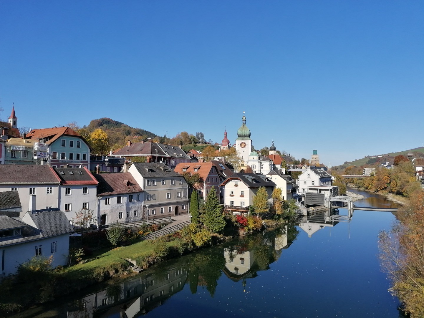 Nur noch ein winziger Anstieg, und dann ist es geschafft! Ob durch den Wald oder direkt den Asphalt hinab auf die Stadt zu, ist nun Geschmackssache. Ein lohnender Kaffee im mittelalterlichen Stadtzentrum von Waidhofen scheint nun mehr als verdient!