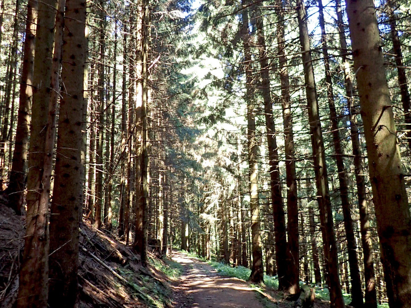 Eine steile Rampe später ist es auch schon geschafft und unter uns breitet sich das oberösterreichische Örtchen Maria Neustift aus. Wir nehmen Kurs auf die Kirche und verschwinden gleich dahinter auf einen losen Forstweg, der in einen Wanderweg mündet. Dieser ist der direkteste Weg von Maria Neustift zur Glasner Hütte und wahrscheinlich auch der steilste.