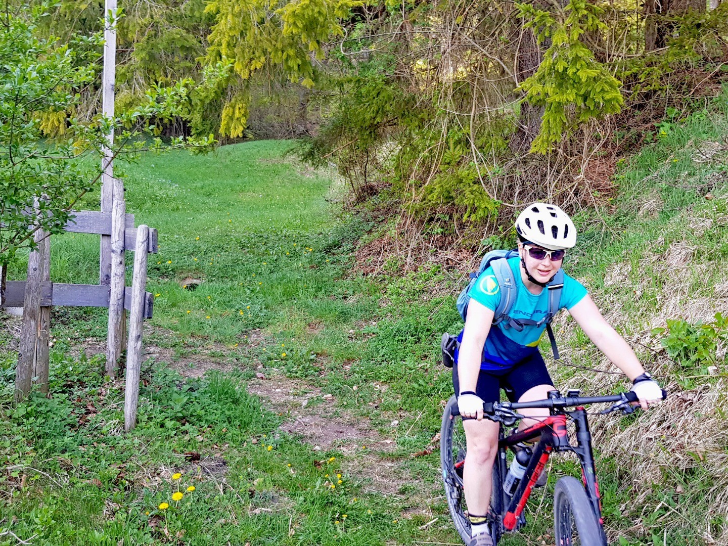 Weiter geht es Richtung Konradsheim, wo uns eine kurze Wiesen-Strecke daran erinnert, dass es sich auf Gras deutlich anstrengender kurbelt.