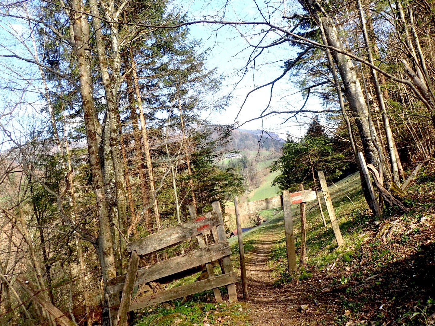 An der Kapelle biegen wir links ein und rollen gemütlich auf Gaflenz zu. Um die viel befahrene Bundesstraße zu vermeiden biegen wir an der Kreuzung in Pettendorf links ab und suchen unseren Einstieg in den Dornbergweg. Dieser führt gegenüber eines alten Hofes scharf rechts weg und steil bergauf. Schieben ist hier ohnehin angesagt, weil wir uns auf einem Wanderweg befinden. (Wanderer hab ich bisher jedoch noch nie welche gesichtet).