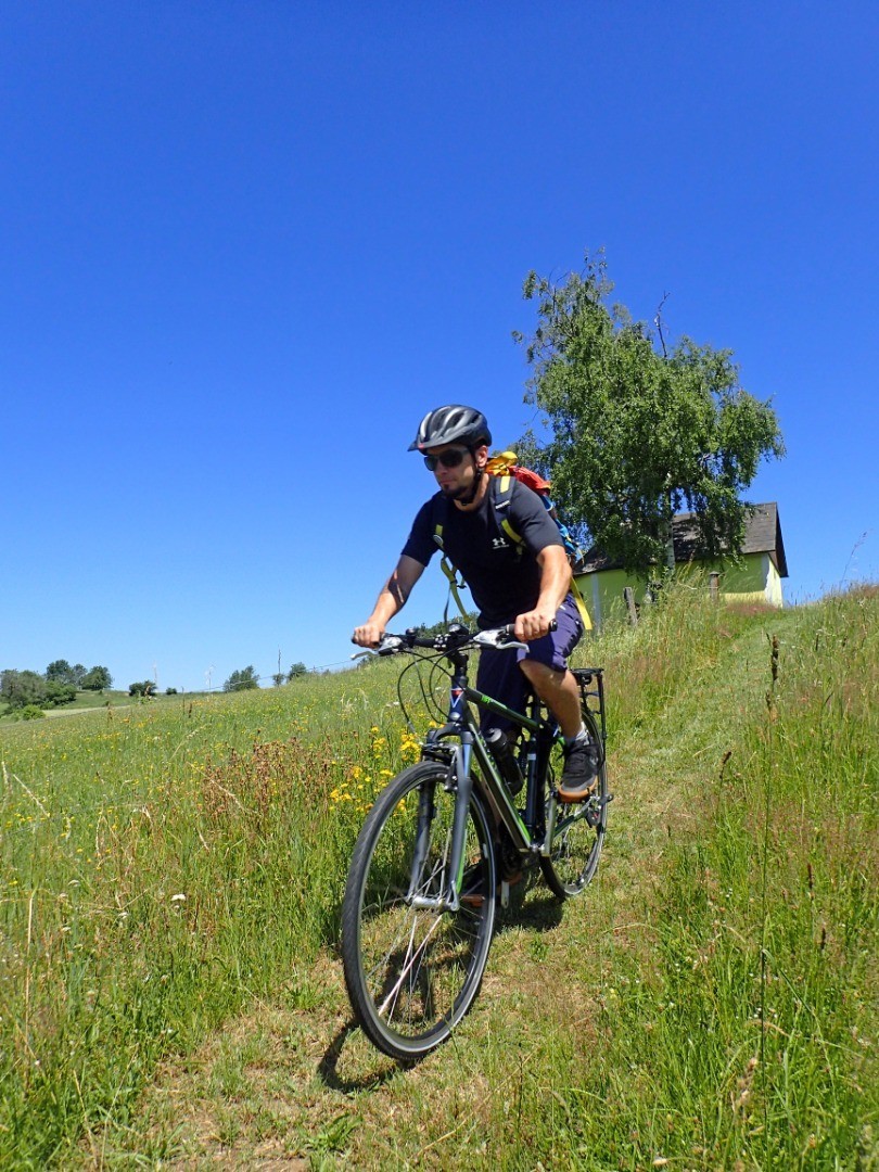 Wir durchstreifen den Park durch die hohe Blumenwiese und schwingen uns dann auf unsere Drahtesel in Richtung Lohn. Noch kurz vor der Ortschaft biegen wir scharf rechts ab, nehmen eine steile Rampe entlang der Römerbrückenstrecke und Kurs auf den Zeller Steg. Der “Fuchsenhofweg” führt uns auf flowigen Trails durch die Waldviertler Wälder und bringt uns bis zum Loschberg.