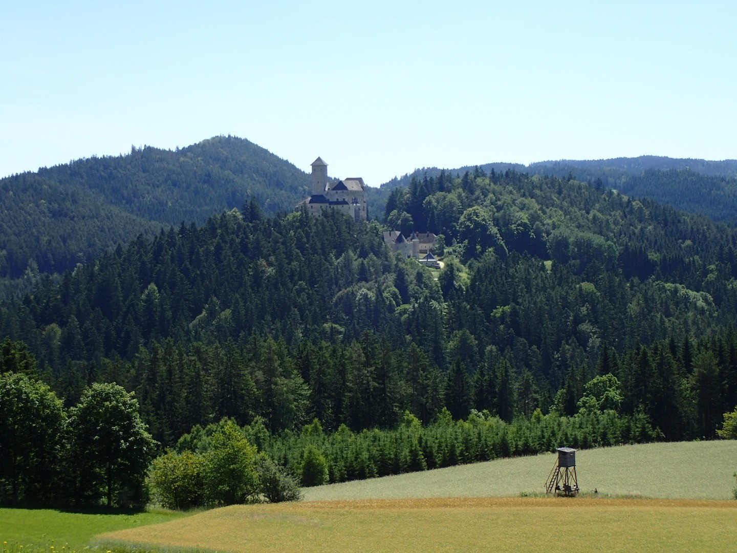 Bei klarer Sicht sieht man angeblich bis zum Ötscher, aber an diesem schwülen Sommertag ist an Fernsicht nicht zu denken.