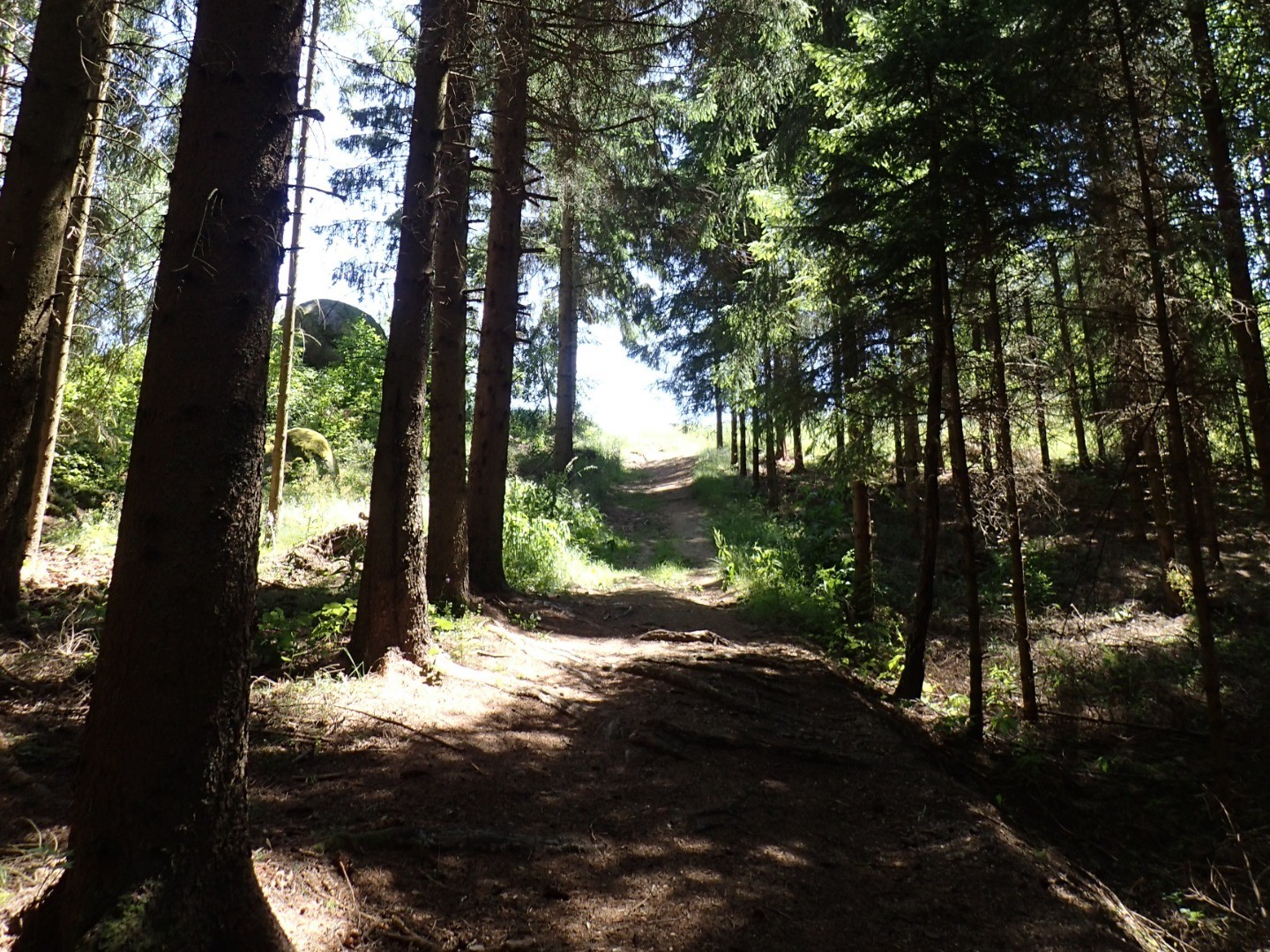 Ausgerastet schlagen wir nun den letzten Tourenabschnitt ein. Etwa einen Kilometer fahren wir auf der Bundesstraße Richtung Pretrobruck nach Osten (in jene Richtung, aus der wir gekommen sind), bevor wir scharf links nach Norden einbiegen. Auf der “Stockzahnstrecke” kommen wir auf Forst- und Wiesenwegen an plätschernden Bächen und an der neu renovierten Hammermühle vorbei. Von der nur wenige hundert Meter westlich verlaufenden Bundesstraße hört und sieht man nichts. Das ist der Vorteil an den dichten Wäldern des Waldviertels.
