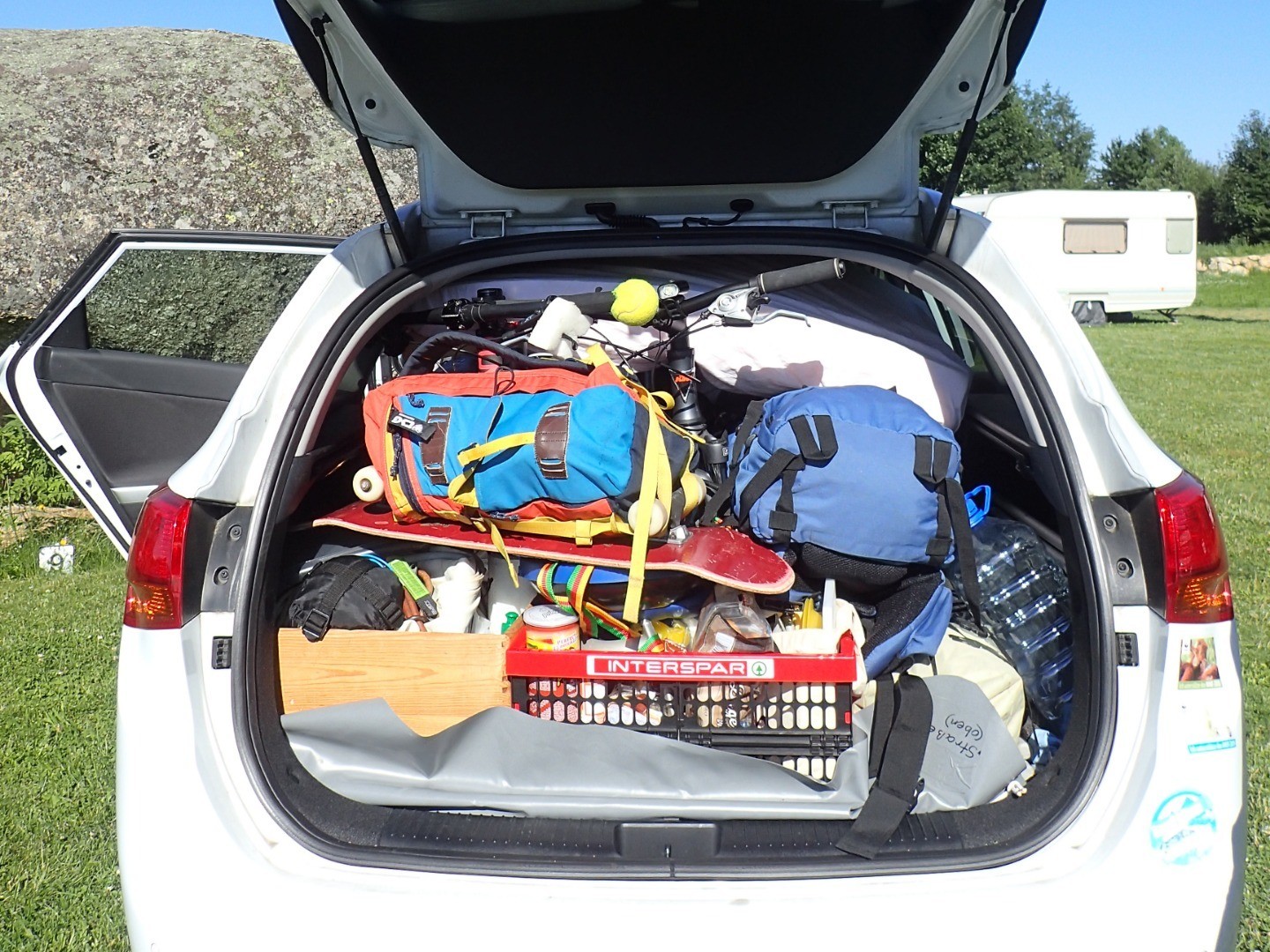 Mountainbiken im Waldviertel? Als Alpenvorländerin wähne ich mich ja schon fast im alpinen Gelände und lasse mich von der Vorstellung der Waldviertler Hügellandschaft nur schwer beeindrucken. Aber es geht ja auch um den Spaß und der Campingplatz ist reserviert, das Auto vollgestopft (siehe Beweisfoto) und die Route mehr oder weniger grob geplant.